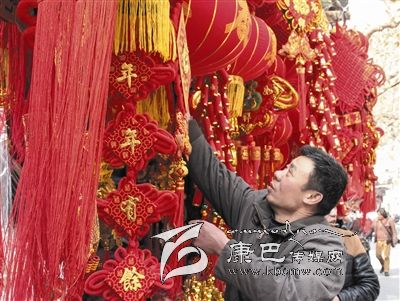 隨后,記者走進(jìn)了一家賣年貨的商鋪,看見寓意美好的春聯(lián)、大紅燈籠和各式彩燈等吸引了大量市民駐足選購。店家告訴記者,由于2016年是農(nóng)歷丙申猴年,猴子的掛飾、年畫等也受到了顧客的追捧。