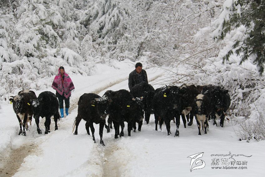 記者在楊柳坪村的水電站附近,遇到了從山上找牛歸來的桐林村村民謝新騰夫婦,“雪下得太大了,得趕緊把牛找回來。”