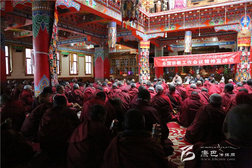 “西藏和四川等四省藏區(qū),都是偉大祖國的重要組成部分;藏族和其他55個(gè)民族一樣,都是一個(gè)媽媽 的女兒。祖國大家庭的溫暖,56個(gè)民族的大團(tuán)結(jié),讓我們倍感幸福與自豪。習(xí)近平總書記在中央第六次西藏工作座談會(huì)和全國宗教工作會(huì)議上發(fā)表的重要講話,不僅充分體現(xiàn)了中央對藏區(qū)發(fā)展的重視支持,而且充分體現(xiàn)了中央對民族宗教工作的重視關(guān)心。這次州委‘藏漢雙語宣講團(tuán)’深入色達(dá)縣喇榮寺五明佛學(xué)院開展集中宣講,就是為了全面貫徹落實(shí)好這兩次會(huì)議精神,更好推進(jìn)我州藏傳佛教寺廟規(guī)范有序、良性發(fā)展。”在宣講員們言簡意賅的開場白之后,便開門見山直奔主題。