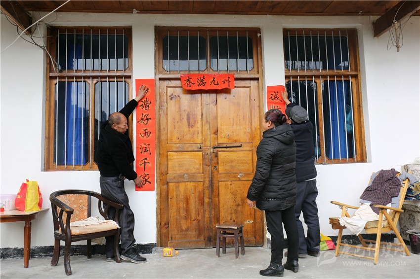 本網(wǎng)訊(賴天 文/圖)22日中午,老陳吃完午飯,就急急忙忙將早已準(zhǔn)備好的春聯(lián)拿了出來,用糨糊刷在門框上,然后小心地開始貼春聯(lián)。“右邊那聯(lián)往下點,有點偏高?!崩详惖钠拮釉陂T前面指揮著,他們的小孫子也興致勃勃地跑來給爺爺幫忙。