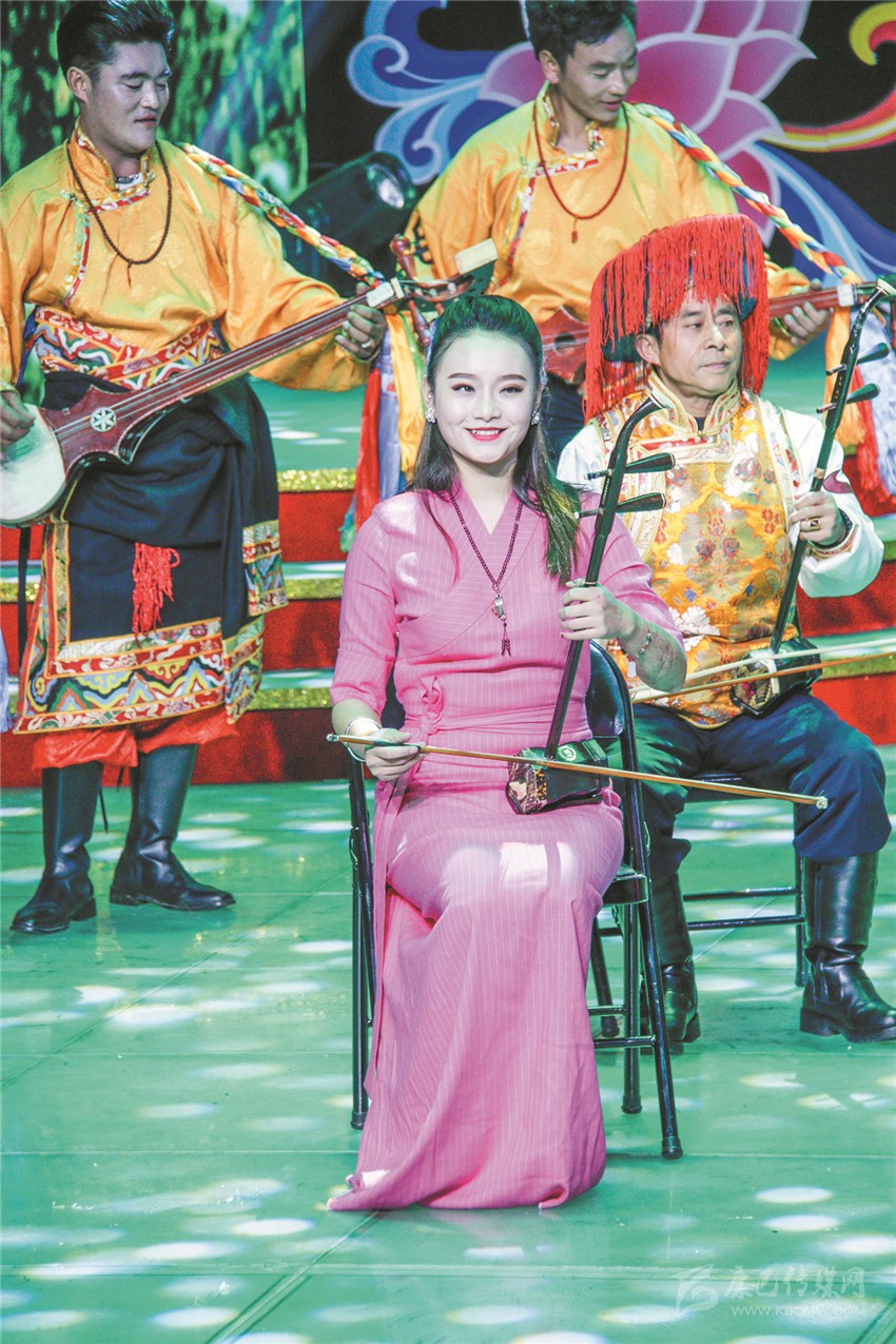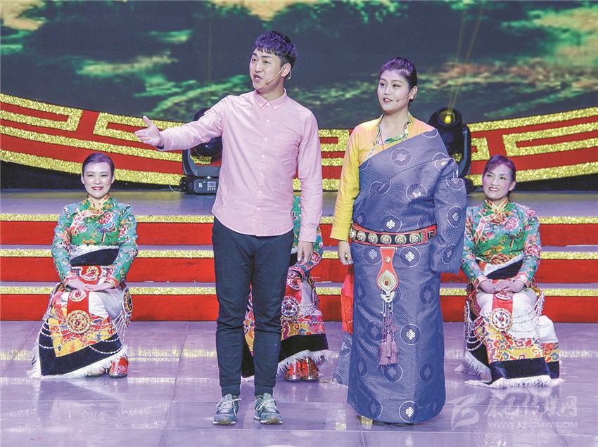 歌曲聯(lián)唱《百花爭艷》,是演出中第一個讓觀眾們大呼過癮的節(jié)目,年僅5歲的澤仁拉姆用一首藏族原生態(tài)歌曲《故鄉(xiāng)》,讓全場觀眾耳目一新。緊隨而來的藏族山歌《家鄉(xiāng)美》、漢族歌曲《和諧大家園》、回族歌曲《花兒與少年》、彝族歌曲《 尼雨尼杰》將音樂的魅力逐級顯現(xiàn),最后在經(jīng)典歌曲《愛我中華》中急速升華。6首歌曲風格各異,卻又一氣呵成,不僅集中展示了我州藏、漢、回、彝四個民族的藝術風采,還生動展現(xiàn)了我州各族人民其樂融融、團結(jié)進步的和諧面貌。