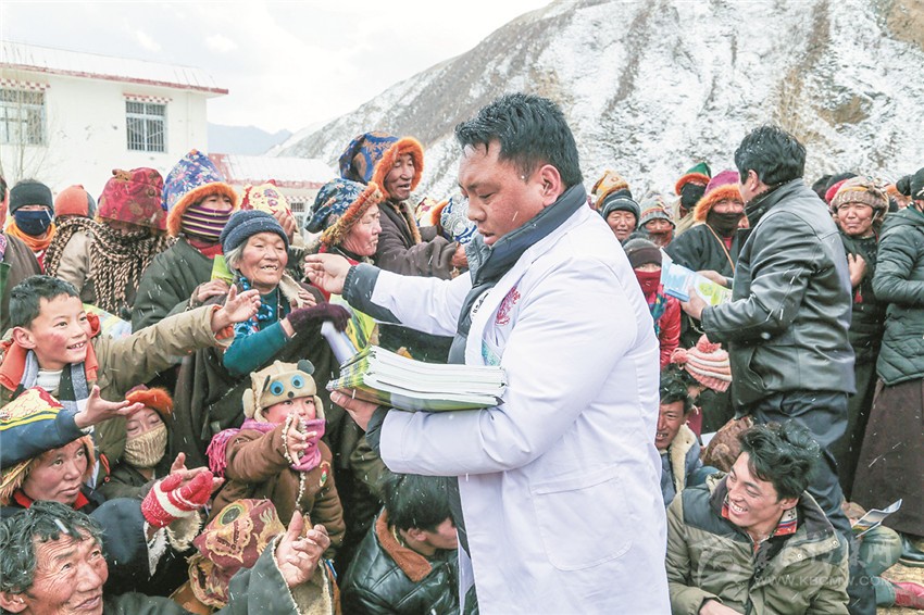 “今天真開心,我們又盼來了‘五下鄉(xiāng)’活動(dòng),收獲了知識(shí),檢查了身體。感謝黨的好政策!”燈龍鄉(xiāng)村民扎西說?;顒?dòng)中,共發(fā)放宣傳資料、圖書、光盤3250余份,發(fā)放了價(jià)值8666元的藥物,現(xiàn)場(chǎng)義診334人次,服務(wù)群眾1520余人。