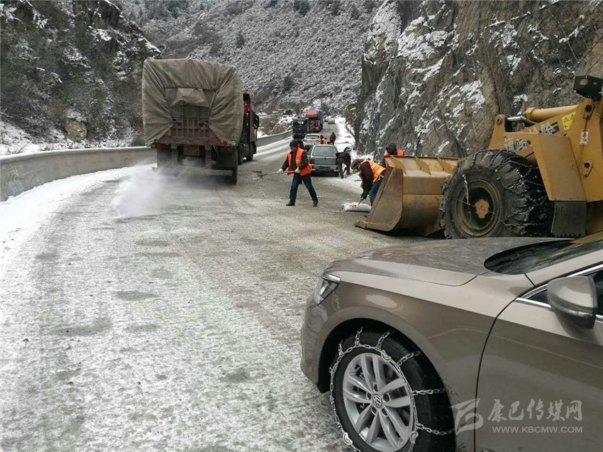本網(wǎng)訊(賀淑明 文/圖)2月23日以來,受強冷空氣影響, 我州境內(nèi)普降大雪,康巴高原銀裝素裹,氣溫驟降。瀘定公路分局管養(yǎng)的G318線k2823+500-k2875+000段,路面積雪,給過往駕乘人員造成較大安全隱患。