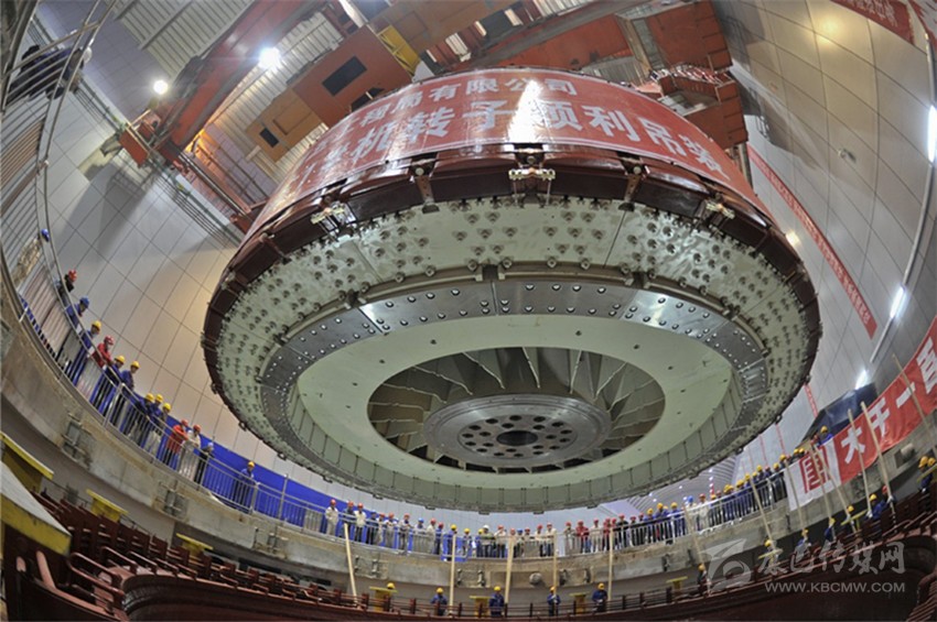該轉(zhuǎn)子外徑尺寸12.5米、高3.6米、總重量1240噸,歷經(jīng)145天組裝完成,經(jīng)檢測該機組轉(zhuǎn)子圓度、磁軛波浪度等質(zhì)量指標均超過廠標及國優(yōu)標準,優(yōu)于集團公司精品工程要求。圖為組裝現(xiàn)場。