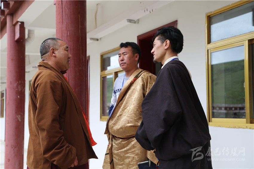 宣講員與寺廟僧人交流。