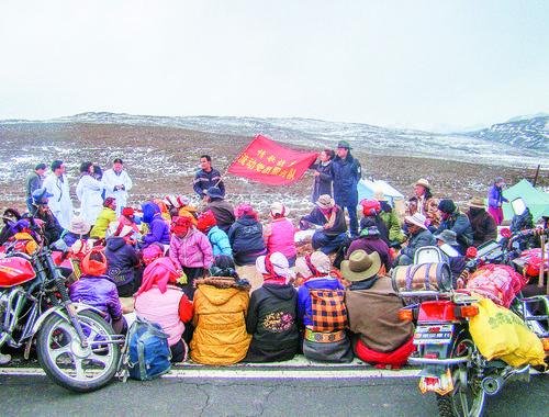 海拔4500米的蟲草山上,流動黨員服務(wù)隊紅旗飄揚(yáng)。