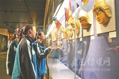 學(xué)生們在博物館參觀面具展。