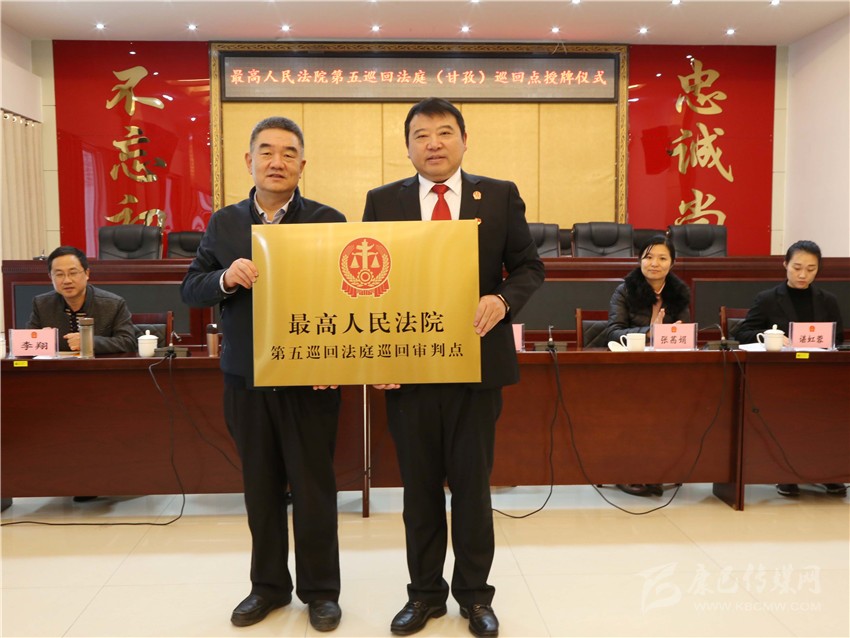 本網(wǎng)訊 11月13日,最高人民法院第五巡回法庭(甘孜)巡回審判點(diǎn)授牌儀式在甘孜州中級(jí)人民法院舉行,此次在四川設(shè)立兩個(gè)巡回點(diǎn),州中級(jí)人民法院是授牌點(diǎn)之一。最高人民法院第五巡回法庭分黨組成員、副庭長(zhǎng)汪國(guó)獻(xiàn)為該院授牌并在儀式上作講話(huà),甘孜州中級(jí)人民法院黨組書(shū)記、代理院長(zhǎng)付寶接牌并作相關(guān)工作匯報(bào)。