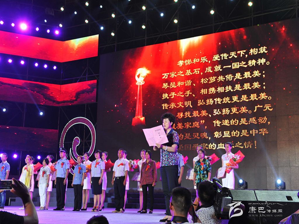 8月31日晚,廣元市隆重舉行“向幸福出發(fā)——尋找最美家庭”家庭文化才藝展演活動暨頒獎典禮。我州丹巴籍農婦滕德芬作為20戶廣元市“最美家庭”之一,登臺領取了“最美家庭”榮譽證書。圖為省婦聯(lián)副主席張懷青致頒獎詞。