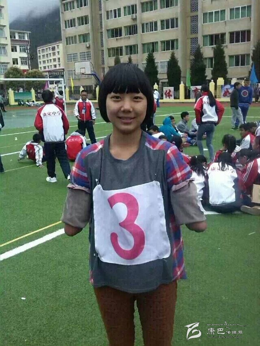 在康定中學(xué)校園里,你會(huì)邂逅這樣一位女孩:臉上永遠(yuǎn)燦爛著陽(yáng)光般的微笑,雙眼永遠(yuǎn)閃爍著自信樂(lè)觀的光芒。教室里,她聚精會(huì)神地聽(tīng)課;圖書(shū)館里,她專心致志地讀書(shū);操場(chǎng)上,她身輕如燕地奔跑;寢室里,她開(kāi)心爽朗地和同學(xué)交流??赡阕屑?xì)一看,她竟然沒(méi)有雙臂,就像折翼的天使。她就是該校高2016屆8班學(xué)生,羌族女孩許方燕。行走在高原的風(fēng)中,她是一幀讓每一個(gè)人內(nèi)心泛起感動(dòng)漣漪的美麗風(fēng)景……