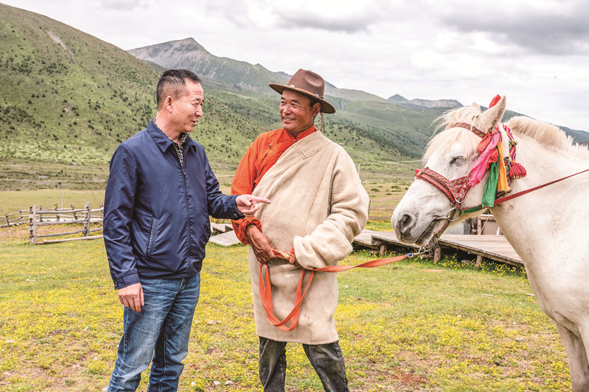 景區(qū)建成后,俄達(dá)門巴村旅游資源得以盤活,李華能積極探索“資源變資產(chǎn)、牧區(qū)變景區(qū)、牧民變股民”的扶貧新模式,村集體以集體資產(chǎn)入股,與景區(qū)按1∶4進(jìn)行收益分成,還實(shí)行保底分紅制度,每年為村集體分紅85萬(wàn)元。目前,已有40余名村民成為景區(qū)員工,其中脫貧戶15人,公司年支出工資達(dá)100多萬(wàn)元。此外,公司每年出資40多萬(wàn)元,為俄達(dá)門巴一、二村共163戶、733名牧民全部購(gòu)買醫(yī)療保險(xiǎn)和適齡人員農(nóng)村養(yǎng)老保險(xiǎn),從根本上解決了村民的養(yǎng)老及醫(yī)療保障問(wèn)題。