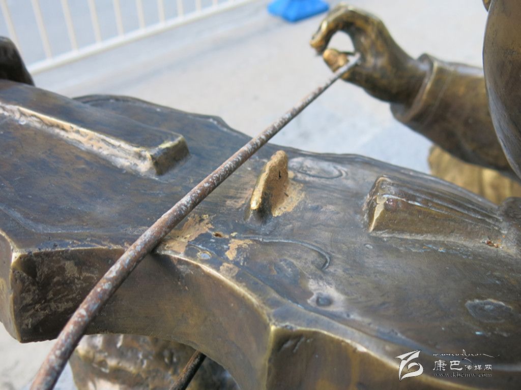 國慶長假期間,康定情歌城的各類主題雕塑,成為游客拍照留戀的好去處。然而記者發(fā)現(xiàn),許多雕塑被人為不同程度破壞。情歌大廈旁邊的雕塑上的琴弓不翼而飛,琴身上有明顯人為破壞的痕跡。不得以市政管理部門只能以一根建筑鋼筋代替,極大地影響了雕塑的美觀。