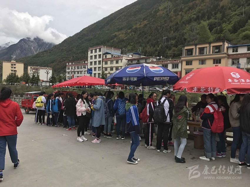 那么真實(shí)情況到底如何呢?7日,記者專門來到康定中學(xué)走訪調(diào)查。記者搭乘出租車前往學(xué)校,途中司機(jī)卻回應(yīng)“康中校門口那一段全是賣炸洋芋、炸雞腿的攤攤,車子根本開不過去,只能提前下車?!碑?dāng)記者步行過橋到達(dá)校門口路段時(shí),雜亂無(wú)序而又異常喧鬧的場(chǎng)面立刻映入眼簾。約摸十來家燒烤油炸“流動(dòng)攤點(diǎn)”上,商販們手中的烤具上下翻飛,幾十名身著“康定中學(xué)”校服的學(xué)生駐足其間,從校門出入的車輛不斷鳴笛避讓??久娼?、炸土豆、烤雞腿,濃濃的油煙、各種調(diào)料混合的氣味、滋滋的油炸聲……儼然一副“美食街”的火爆景象。